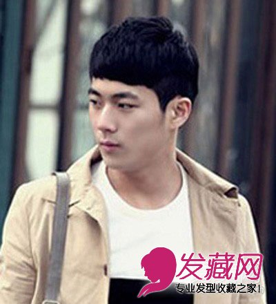 小编点评:近年从韩国吹来的齐刘海风潮使男生们都爱上齐刘海短发,短短的齐刘海十分个性可爱,完全令大家看不出你的真实年龄,蓬松的发顶十分自然有型。