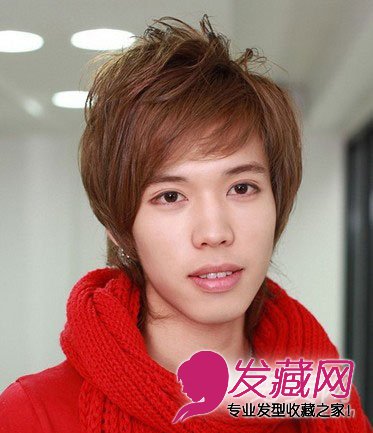 小编点评:将头顶的头发抓得蓬松凌乱,可以使五官更加立体有型,两鬓的头发留得很长给人感觉趋向中性化,棕色的发色为这款头发增色不少,喜欢走中性风的男生们可以尝试一下这款发型。