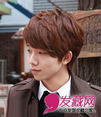 小编点评:想走韩式花美男风格的潮男们,绝对不可以忘了这款发型。斜刘海可以很好地修饰脸型,显得更加俊秀。棕色带点酒红的发色十分时尚流行。