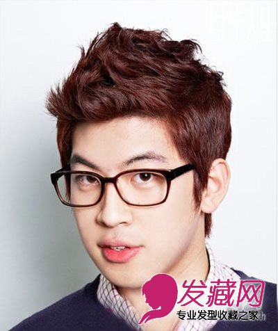 小编点评:这款简单的抓发,绝对是每个男生都会的一款发型。将刘海与头顶的短发向上抓,用发胶定型,非常凌乱但是十分帅气有型。酒红的发色十分抢眼,配上黑框眼镜添了一丝学院风男生的斯文秀气。