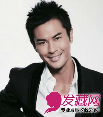精剪的短发,十分的个性清爽,顶部利用发蜡随意打造蓬松起来,清爽有型,穿上黑色的西服十分帅气。