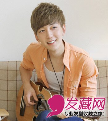 帅气迷人的韩式纹理烫发型,淡棕色的染发看起来十分清秀,服帖的男生斜刘海发丝不仅可以修饰脸型而且还很有魅力呢。