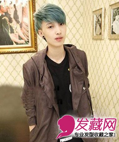 现在看到的这一款男生发型,帅气短发加入了流行个性的淡绿色染发颜色,个性另类非主流男孩韵味十足,随意碎剪的男生短发造型,显时尚阳光。搭配深色长款风衣,让你更帅气更有魅力!
