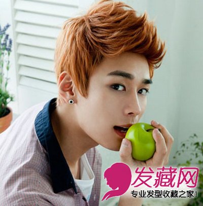 发丝分明的短发离子烫发型,往上梳起的刘海发丝,尽显俊秀的五官脸型,两侧稍长的鬓角起到很好的修颜效果,染上一个棕黄发色,在2013年里是最帅气时尚的发型。帅气有型。