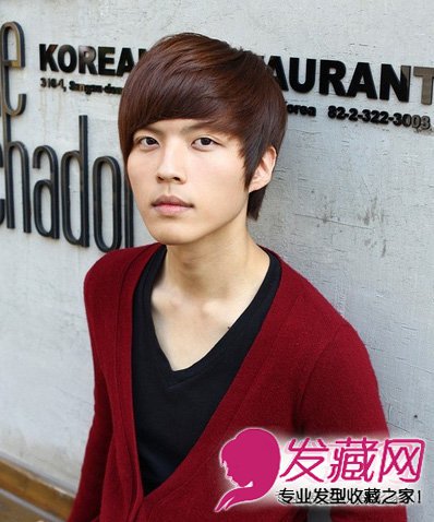帅气而有绅士风度的韩式男生短发造型,头发打造出光泽莹润的效果,垂顺自然,年轻帅气从中透露。倾斜的刘海紧贴脸部轮廓,紧致而秀气。酒红色的染发在今年十分流行。