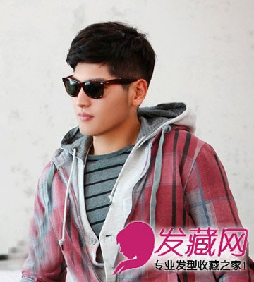 简单露额发型,清爽显酷,厚重的发顶质感十足,纯黑色发色自然澄净,搭配一副墨镜,更添型男魅力。