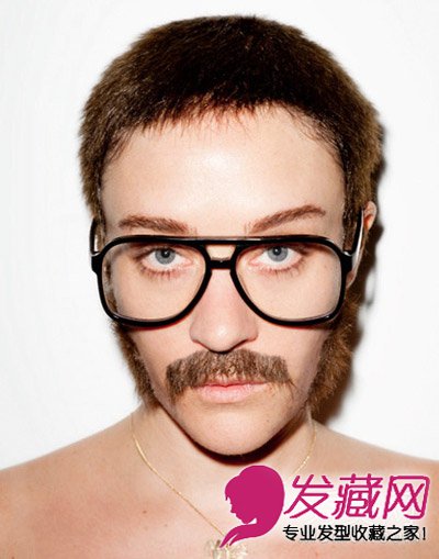 略长的圆寸发型配合浅棕色发色,有着浓厚的男人味,配上一副大框眼睛潮味儿十足。