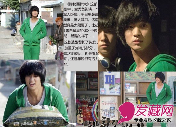 不敢认了吧,这就是《来自星星的你》中的“外星人”,但是这款造型出演的剧是很好的剧,只是金秀贤不改水瓶座古灵精怪的个性,在这里扮丑,是不是有点山寨李小龙的感觉,可是这样也少不了长刘海儿,没有长刘海儿,哪来韩系美男味道?