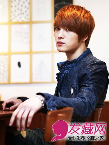 一头橙红色头发的金在中,绝对是众人的焦点所在。齐刘海以特定的弧度从两边颧骨开始修饰这他的面容,略厚重的头发却给人稍稍的沉闷感。