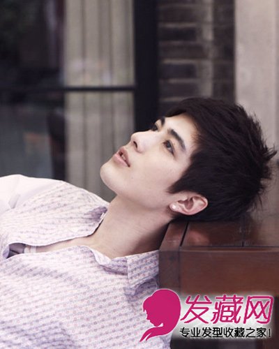 这款青涩的短发造型,个性的刘海弧度很好地修饰脸型,让陈学冬变身花美男。