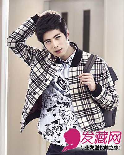 陈学冬这款个性的露额飞机头发型,搭配格纹棒球外套,时尚大方。