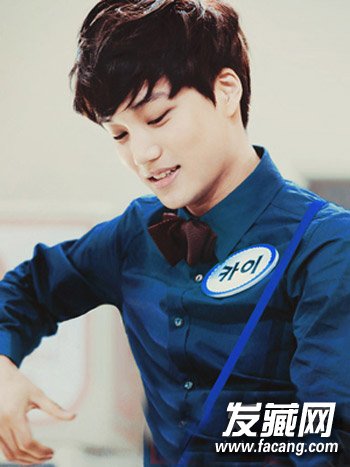 这款韩式纹理烫短发很受潮男们的喜爱,修剪的层次感斜刘海修颜,蓬松的烫发搭配深棕色的染发,很衬肤色。