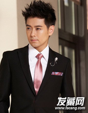 个性的男生烫发发型,清爽露耳短发加上时尚的抓发造型勾勒出别致的时尚与个性来,搭配上西装显露出无比的帅气来。