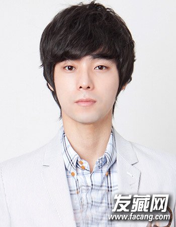 时尚的定位烫短发造型,搭配修颜的厚重刘海修饰,瞬间将较大的脸型修饰的十分完美,是一款帅气的大脸男生发型设计。
