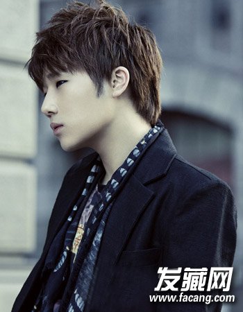 个性的男生纹理烫发是现在男生们对于发型选择的最好的要求,所以个性的碎发刘海显露出无比的时尚感来,加上时尚的发色搭配上西装后十分抢眼。