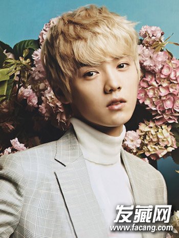 潮流男生们最青睐的一款男士烫发发型,纹理烫修剪出细密的层次感,浅金色染发搭配烫发设计很有潮流的韩流气息。