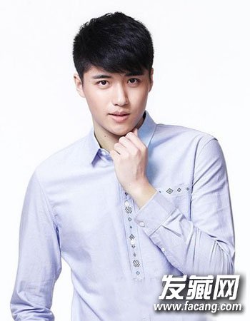 简单的斜刘海造型设计与清新自然的乌黑发色相搭,厚重刘海造型与清爽的颊光造型设计更添丝时尚干练风,同样是很适合职场男士的一款魅力发型。