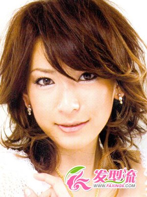这是一款长度至锁骨下6CM、极具层次感的发型。为使前面头发呈现美丽的圆弧形,要进行小层次修剪。头顶头发要进行烫发以展现出量感,后面发际头发则要做出外翻翘,太阳穴处的发梢要做出内卷造型。