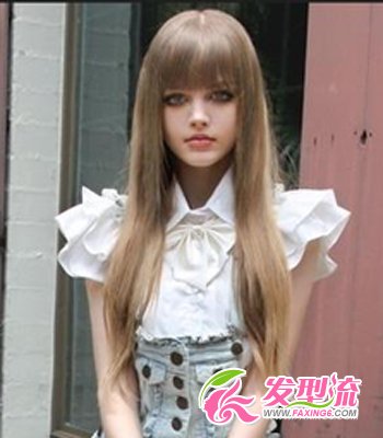 长长的直发柔顺飘逸,性感唯美,十分动人。发梢营造出弧度感,优雅又妩媚。齐刘海带出小女生的几分甜美可爱,发丝紧贴脸颊,把五官衬托得更加精致,打造出小脸美女。时尚又个性的荷叶边白衬,再搭配水洗磨白背带裤,非常甜美时尚。配上浓重的眼妆,整体搭配效果very perfect,绝对是街头混搭时尚达人!