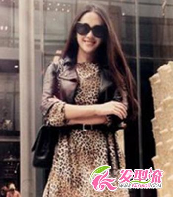 柔软的发丝如同微风轻盈,随意披在肩上,自然又性感。染上棕色,营造几分成熟气质。中分刘海把姣好的脸型显露无遗,时尚墨镜更是把脸型修饰得小巧精致。上身巴黎纱质连衣裙,飘逸动人,豹纹图案性感又白搭,再搭配件黑色皮衣,带着几分帅气。如此前卫潮流的时尚混搭,走在街头,绝对是亮点!