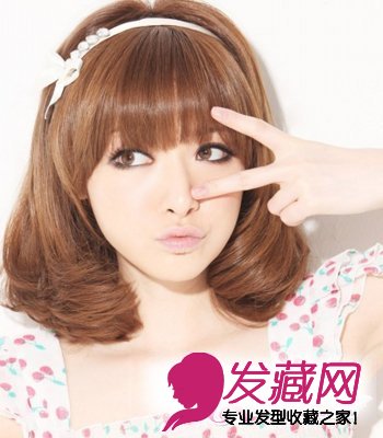 中长发发梢内卷堆积在颈部,利用美发产品涂抹在发尾上,用手拢松卷发让发质看起来更加蓬松。棕色染发打造出女生的甜美特质,加上白色发箍的点缀,在染色中脱颖而出。这样的发型展现了少女系的清新气息,怎能叫人不爱?