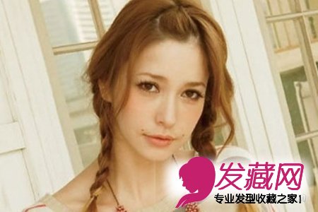 俏皮发型 将头发分成两半,分别编三股辫,用橡皮筋绑紧,辫子松松的更显可爱俏皮,刘海抓起,扭转后用夹子固定,小清新感觉的扎发,透露出一种自然纯美气质!