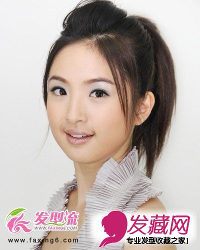 头顶抓出一股头发,使发型有空气感, 故做的蓬松,很好的拉长了饱满的脸蛋,再扎出一高马尾,显得青春活力,气质倍增,染上接近自然色的栗色,不失时尚感。中长发发型的你, 可以跟林依晨学学哦~