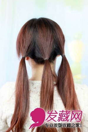 首先把头发分成3个区域,然后分别扎3个马尾,如图所示