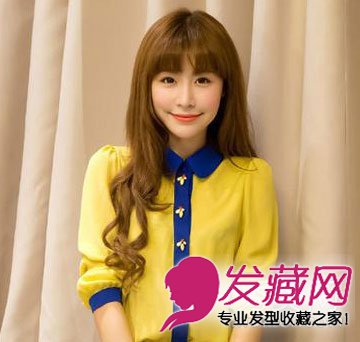 齐刘海长卷发发型,亚麻棕色染发,整款发型透着甜美时尚感,精致的妆容,俏丽迷人!