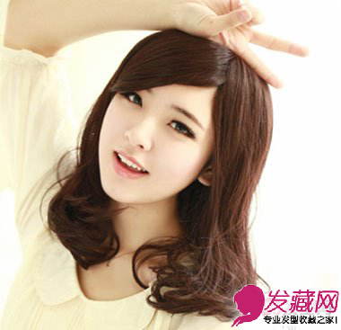 三七分的斜刘海显得很有厚重感,完美的修饰了脸型,巧妙的遮住不够完美的地方。栗色的染发,将皮肤衬托得白皙年轻。中长发的卷发带着一丝轻熟女的气息,自然的卷发尽显俏皮可爱,真的是太迷人了。