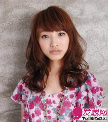 这款中长发烫发发型给人一种空气感的飘逸盈动,微微侧分的斜刘海加上贴合脸型的卷发,修颜效果非常明显,浅棕色的染发更是时尚潮流。