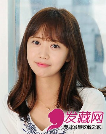 深棕色头发衬出白嫩肤色,轻薄齐刘海及眉有修颜效果,让整个人显得十分甜美温婉。