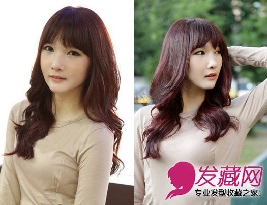 小编点评:浪漫的螺旋烫卷发华丽妩媚,酒红色更显女人味。
