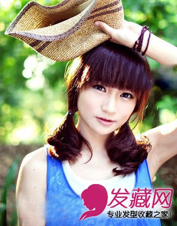 超卡哇伊的双马尾辫,充满日系的萝莉感,中长度的小卷发,蓬蓬的马尾发丝搭在两侧,一排减龄的齐刘海,圆脸妞更加可人。