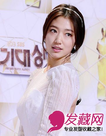 朴信惠的这款中分扎发造型看上去甜美可人,配上发箍,耳饰点缀又不失端庄正式感,中分低扎发优雅瘦脸,公主范十足。