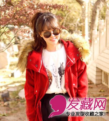 高高扎起的马尾辫简洁清爽,轻薄的齐刘海修出娇俏甜美的脸庞,一副墨镜的搭配,更显优雅潮女范儿。