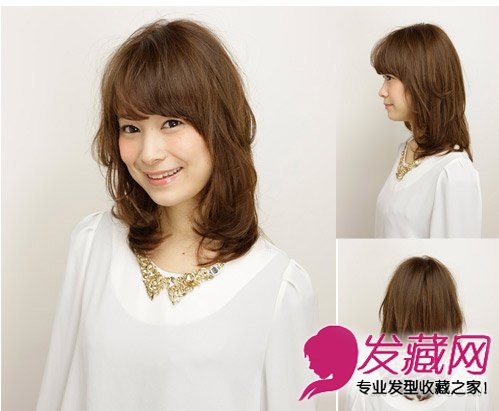 发型点评:这款卷发相对简单,发尾微微翘起,俏皮可爱