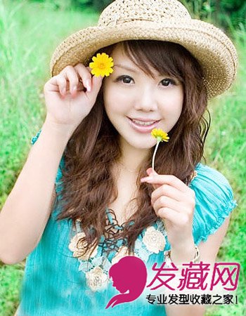 森系的浪漫微卷发型,中长度,更显清新大方,棕色的发丝戴上草帽,漫步田野中,甜美治愈。