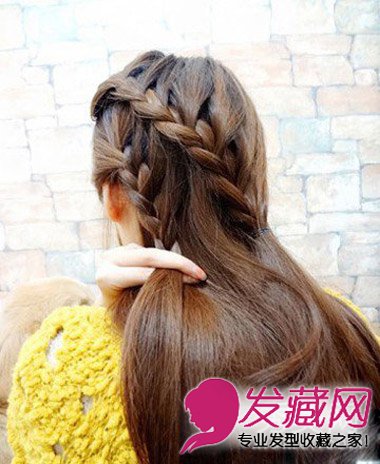 侧扎蜈蚣辫第五步:这是两条竖着的蜈蚣辫编好后的发型。