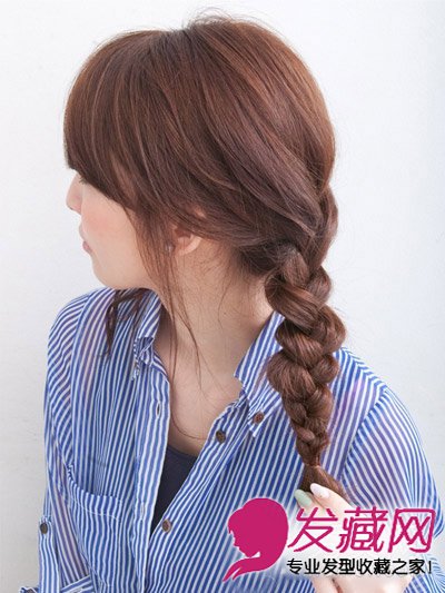 step4:辫子编好后固定发尾。