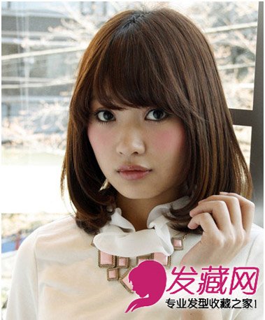 小编点评:厚重的斜刘海遮盖住眉毛衬托出可爱的大眼睛,中长发厚重整齐,可爱又不失优雅。