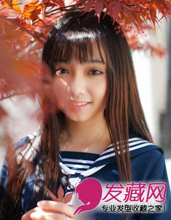 空气刘海柔顺的服贴于前额尽显出小女生的灵动,一款清新的长发直发随意披散开来尽显柔美与时尚感,将圆脸的妹子打造出一种可爱灵动的气质来。