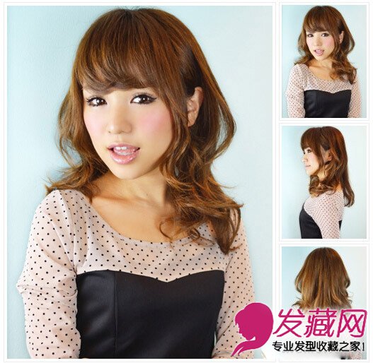 发型点评:斜刘海烫出卷翘弧度,俏皮中多了一抹性感。棕黄色中长发卷发华丽妩媚,性感指数飙升。