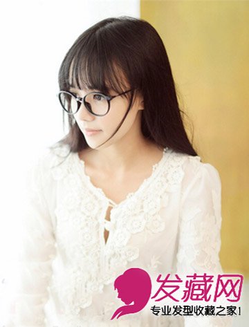 一头披散的柔顺头发,自然的披散着,柔顺又显飘逸感,同时还能让你显得更清纯可人,齐刘海的设计,修颜又显清纯气息哦,搭配个性的镜框,突显文艺小清新范哦。