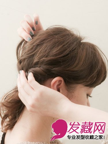 step3:戴上发箍后留出耳前的头发,将脑后的头发束拢。