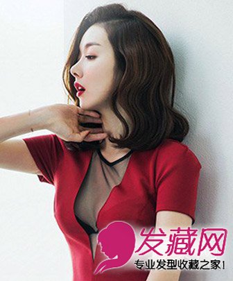 韩流MM们最爱的一款韩式中长发烫发,蓬松的波浪式卷烫发飘逸清新,加上斜刘海修饰脸型,甜美可人。