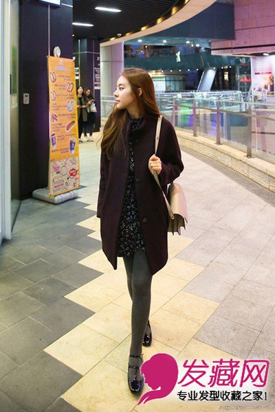 美眉们最爱的韩式卷发发型,亮眼的染发颜色搭配时尚的微卷发,简约更时尚,连衣裙搭配长款的外套,女人味十足。