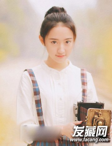 娇俏的丸子头发型清爽中透着可爱感,长发学生妹的首选,利落的绑扎起头发,白衬衫背带裙,打造出具有学院风的时尚软妹。