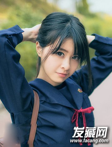 拥有年轻就可以随性释放,简洁的黑发扎个马尾辫,碎发的斜刘海修饰鹅蛋脸型,校服纯美搭配,不娇柔造作如此散发出邻家女孩的气质。