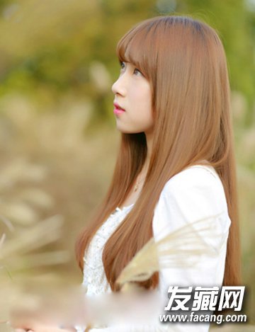 非常洋气的一款棕咖色的长发,柔顺的秀发充满着一种温柔端庄感,而亮丽发色显出白净的肤色,空气刘海打造韩式学生妹。